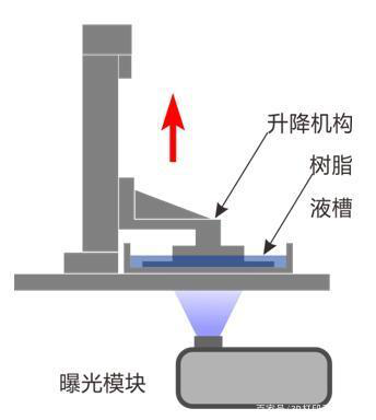 DLP(Digital Light Processing)ye是光固化3D打印机中使用的另一种光固化成型技术,所使用的消耗品与SLA相同。DLP设备包含一个可以容纳树脂的储液槽,该储液槽用于容纳可以通过特定波长的紫外线固化的树脂,DLP成像系统位于储液槽下方,其成像表面位于储液罐的底部。通过图形控制,每次可以固化一定厚度和形状的树脂薄层(此层中的树脂与上一次切割得到的横截面形状完全相同)。将提拉机构放置在储液槽上方,每当横截面曝光完成时,将其提拉到一定高度(该高度与层的厚度一致),以使当前固化的固体树脂与液体槽的底面分开,并固定在提拉板上。通过逐层曝光和提拉来生成三维实体。DLP和SLA之间的区别之一是DLP使用投影仪的数字光源,而SLA使用激光头。